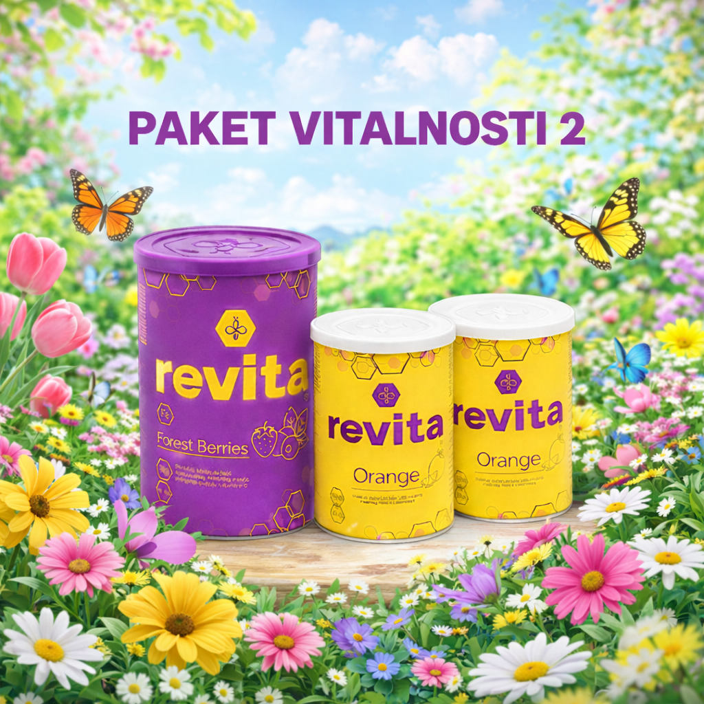 Paket sadrži: 1 x Revita Fe Forest Berries (1000g) i 2 x Revita Orange (200g)